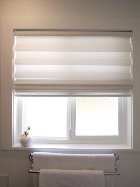 A third savings was that I was able to keep my Hunter Douglas Vignette Roman Shade blind in the bathroom window since we did not change the window. I love that the blind operates by holding the handle on the bottom rail, eliminating the use of pull cords. This type of blind is energy efficient by keeping the cold out and blocking the afternoon heat in the summer.