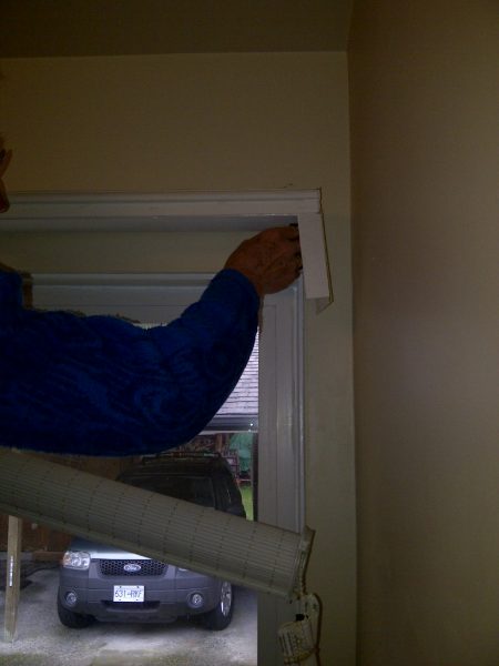 Here my dad is drilling the holes for the valance brackets. The brackets for the roller shade are attached to the valance.